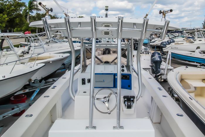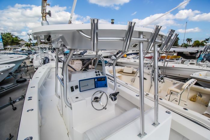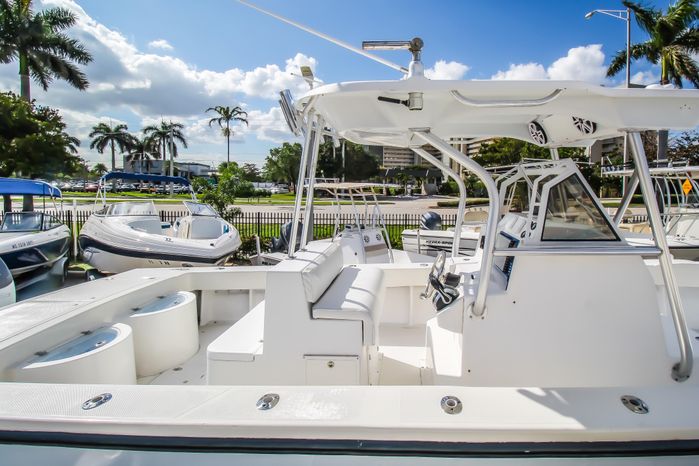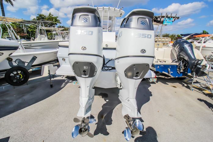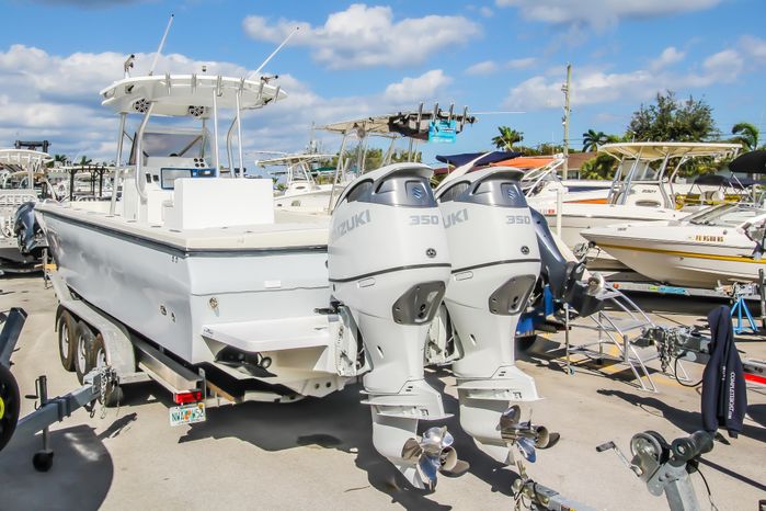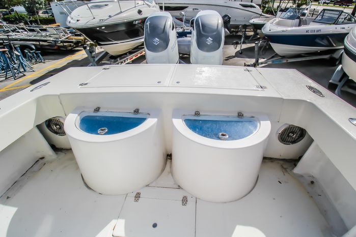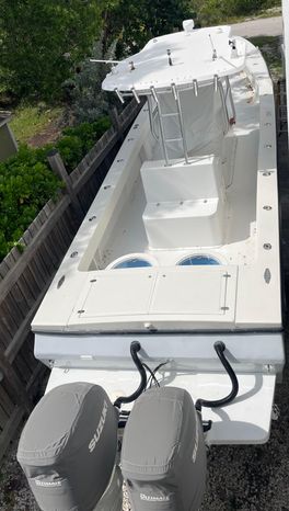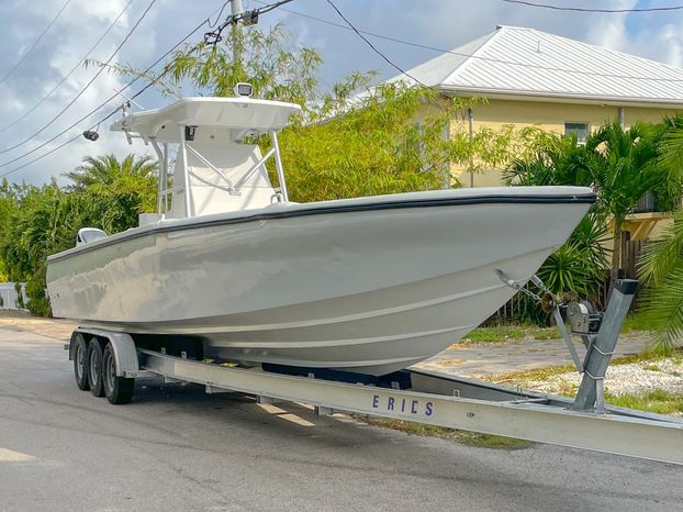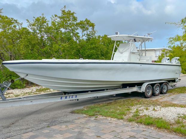 In 2023 the Garmin 1242 xsv GPS, VHF, stereo, remote spot light and two 30 gall livewells were installed. Also has 40 gallon water tank, five AMD batteries with selector switch, kiekhaefer trim tabs, engine covers and dash cover. If your looking for a large center console with newer power with warranty look no further. recent survey on the boat with approx value of $350,000. Surveyors notes, the structure appears sound and overly built by recreational standards. We accept all trades Contact Marty for more details.