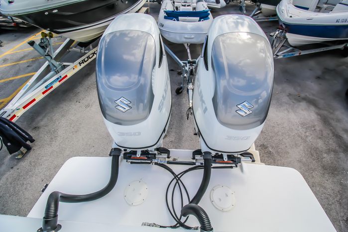 You’re looking at a custom 1993 USMI (Unites States Marine Inc) 38 center console converted to outboards powered with twin 2022 Suzuki’s 350’s with less than 130 hours under factory warranty until 11/27. Total length overall is 40′ feet . The boat been completely refit in 2013 with floors, console, gunnels, newer hardtop, and four brand new fuel tanks total 332 gals.
