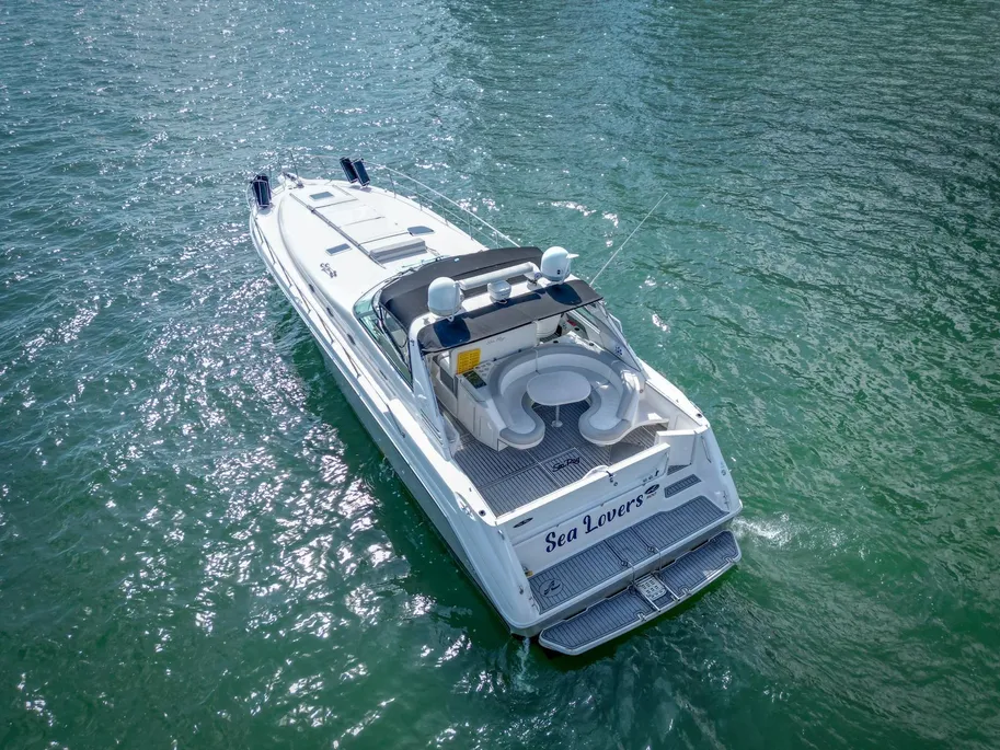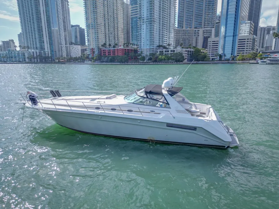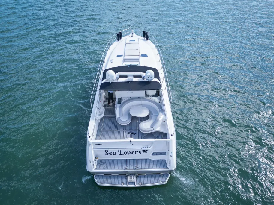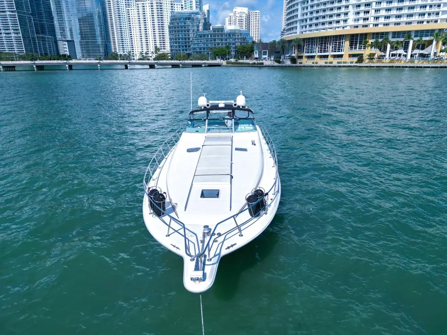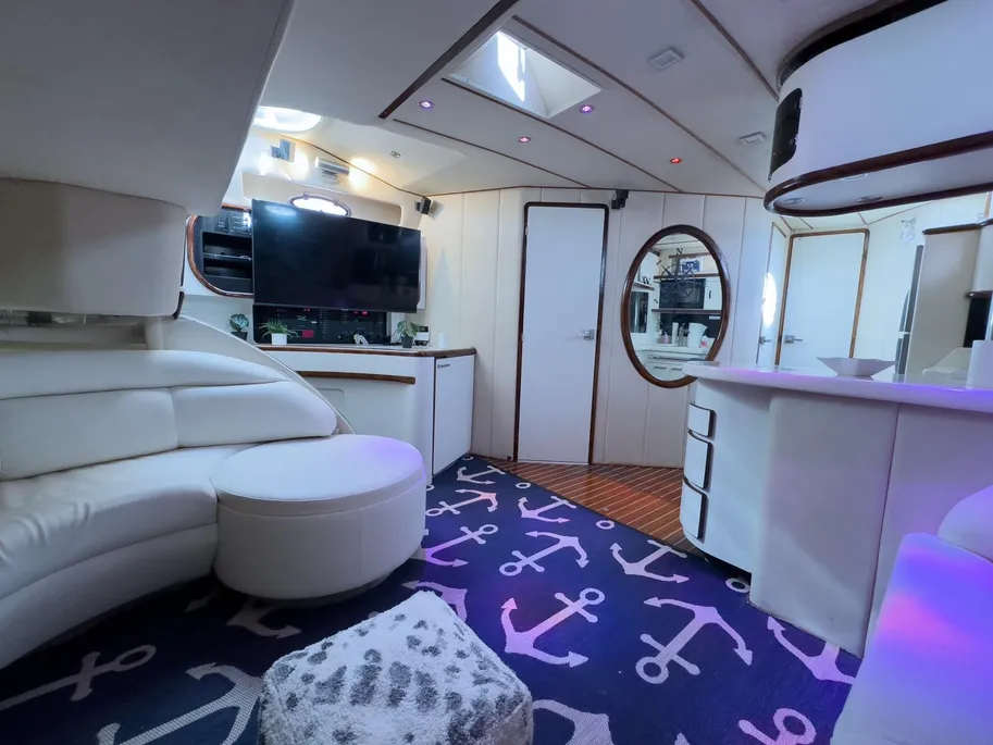 This boat really utilizes its full beam to accommodate to everyone onboard. Excellent condition for its age this vessel has just over 1000 hours. The gel coat is in optimal condition this is due to the fact that the owners wax the yacht every 1-2 months. The boat has upgraded speakers, lighting, upholstery, electronics and flooring. Needles to say this is one of the best maintained mid 90’s yachts you will find on the market. The yacht is powered by twin Detroit diesel motors that boast a total of 1050hp. Everything on this boat works. You will not be disappointed once onboard. Motivated seller submit all offers.