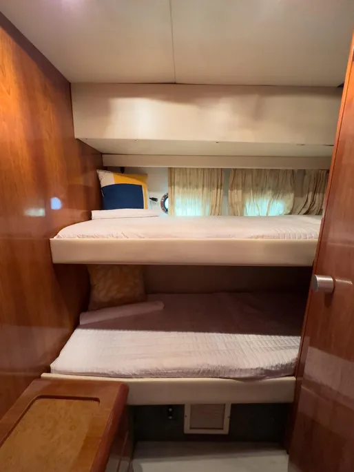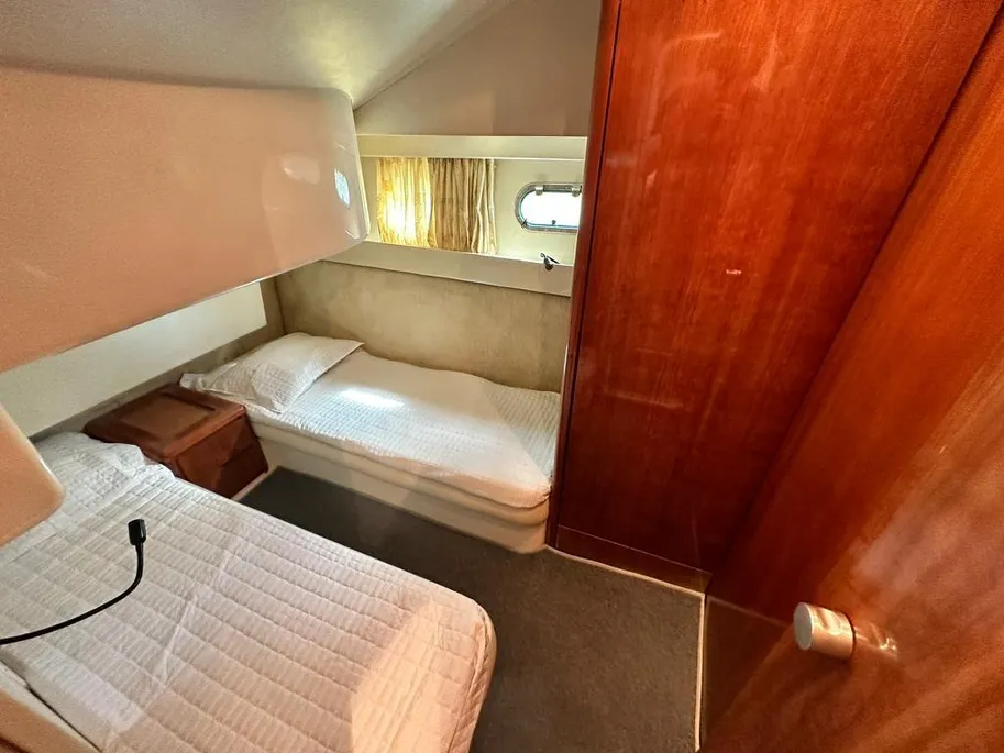 – Elegant Interiors:The interior showcases a masterful layout with two well-appointed staterooms, each featuring en-suite facilities for privacy and comfort. The saloon is designed for relaxation with plush seating and a state-of-the-art entertainment system.