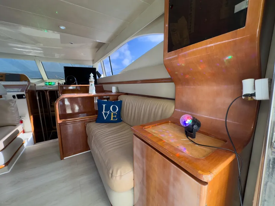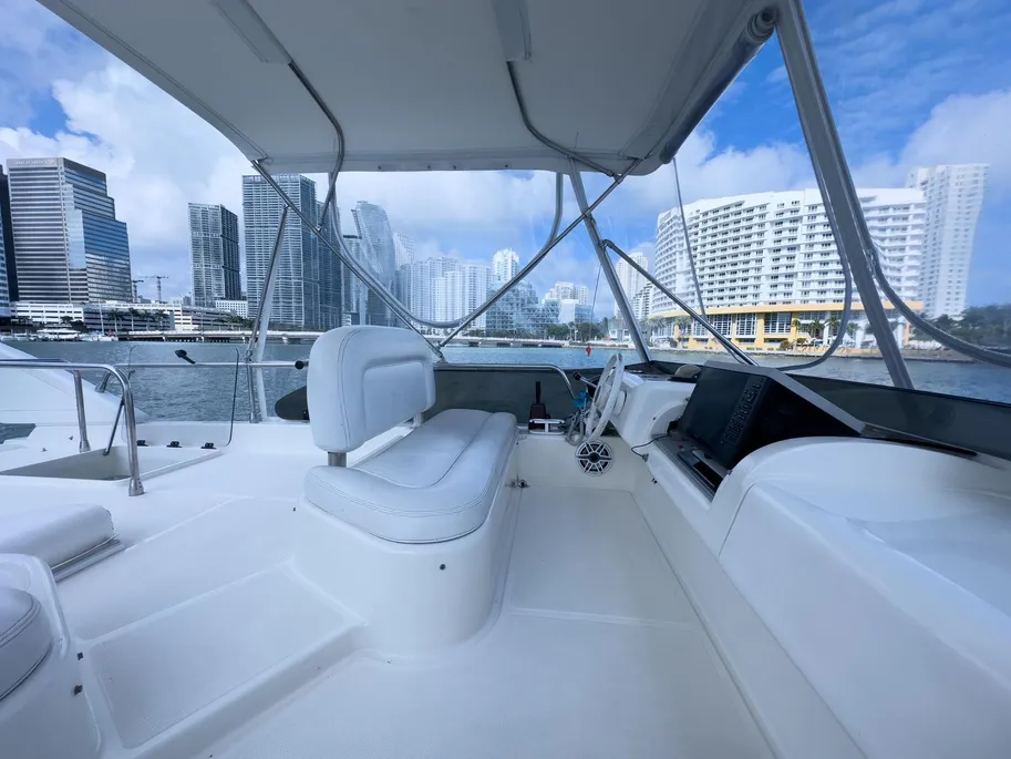 – Spacious Flybridge: The signature flybridge offers expansive views and ample seating, perfect for entertaining or relaxing under the sky. It’s equipped with a helm station that includes all necessary navigational equipment for precise cruising.