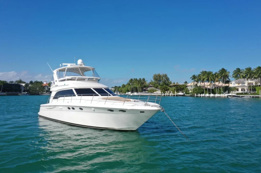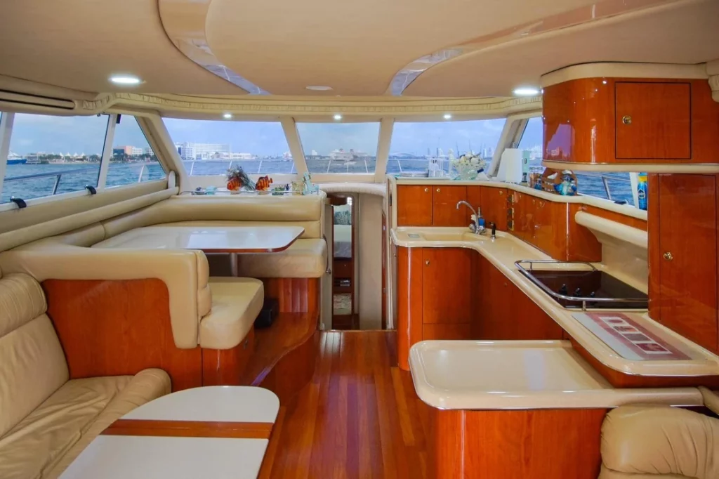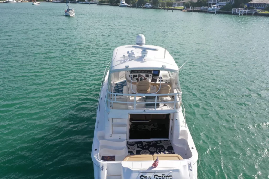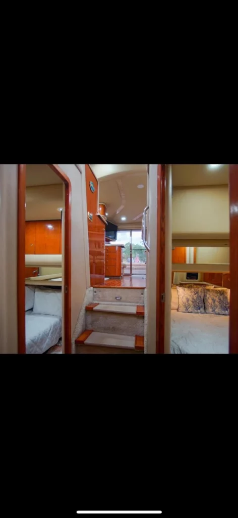 This marvelous motor yacht has been kept in immaculate condition. The 2001 480 Sedan bridge has three independent state room’s as well as a two full head layout. located in the forward section of the yacht is the full size master stateroom. On port side is the vip room and on the starboard side is your guest room. Hard wood flooring was added into the full salon of this vessel giving it a modern design.