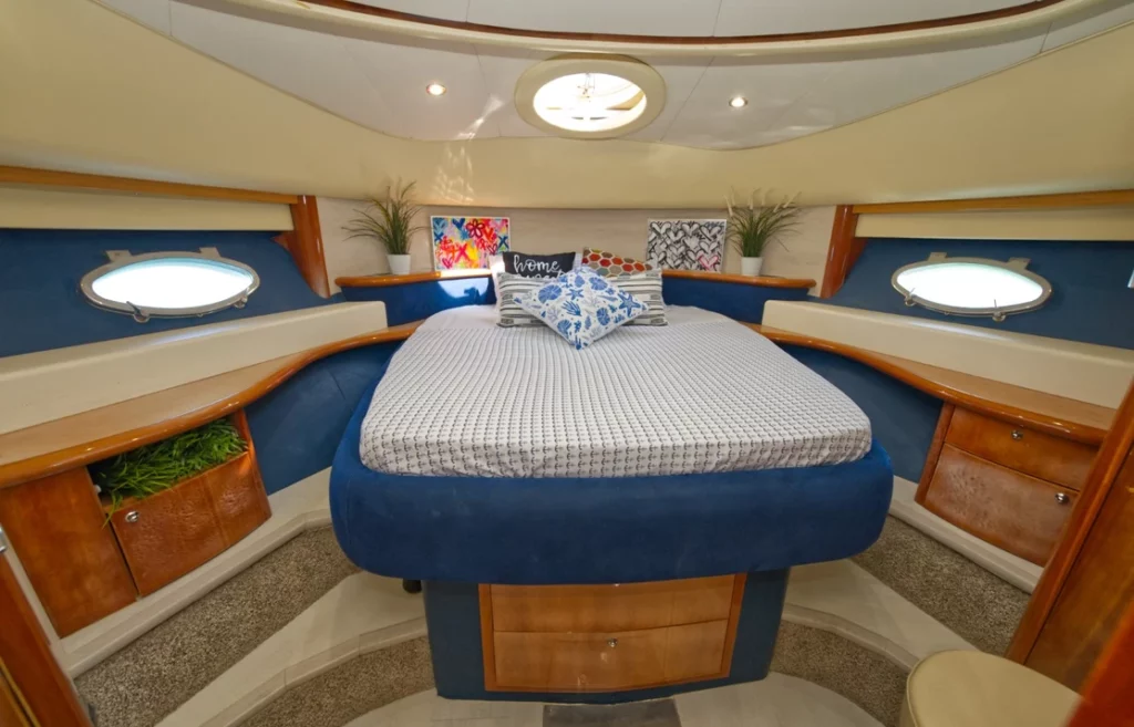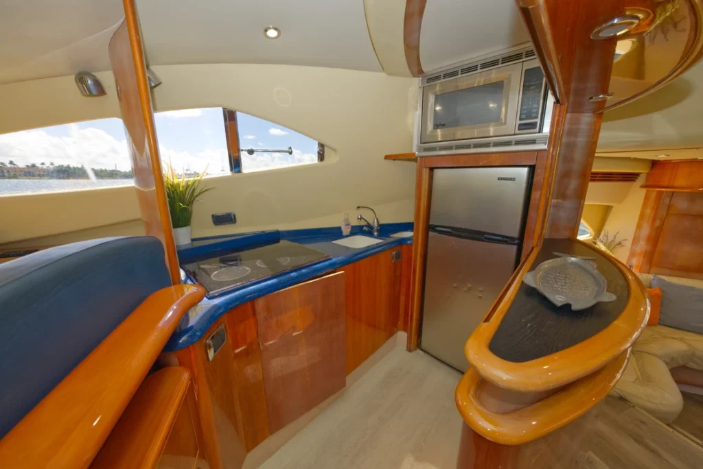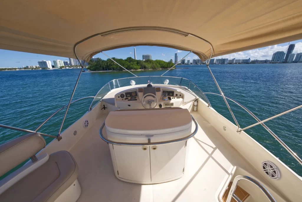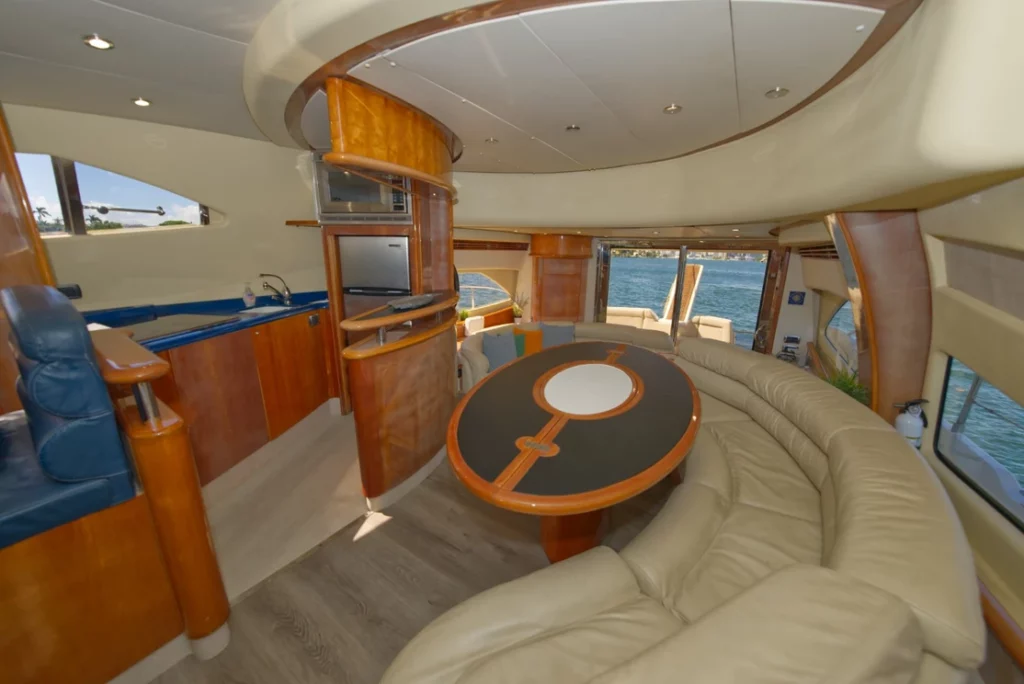 Flybridge- helm station- Bimini top- Round shape seating- Stairs- Sink/ stove- Jl audio speakers