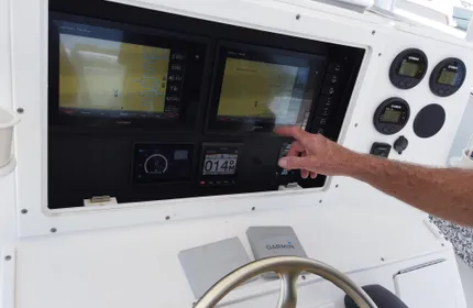 2-7610 Garmin GPS, Garmin Auto Pilot, Fusion UD750 Stereo, Anchor Windlass, Custom Sea- Deck seating and combing pads. Sky blue Awlgrip hull Paint. One of a kind boat, perfect opportunity for the Boater who does not want to settle.