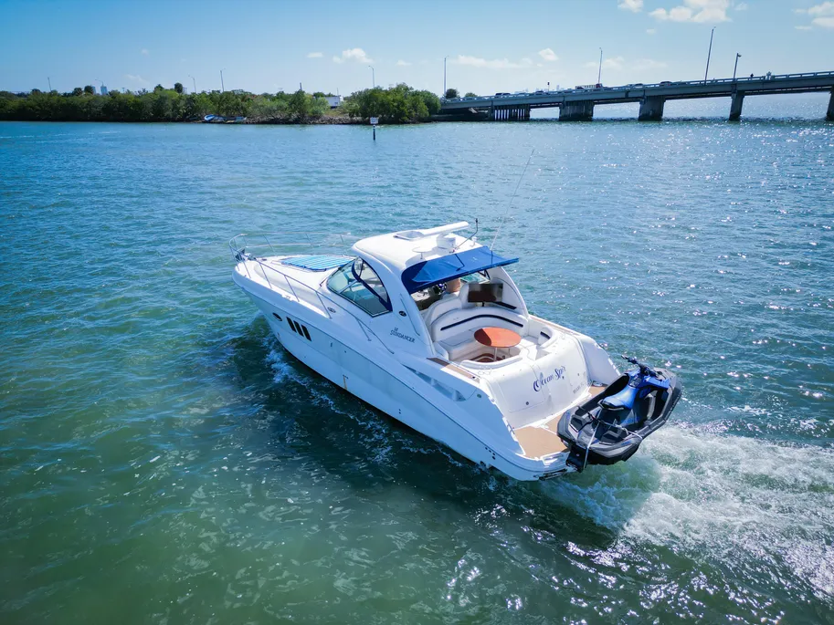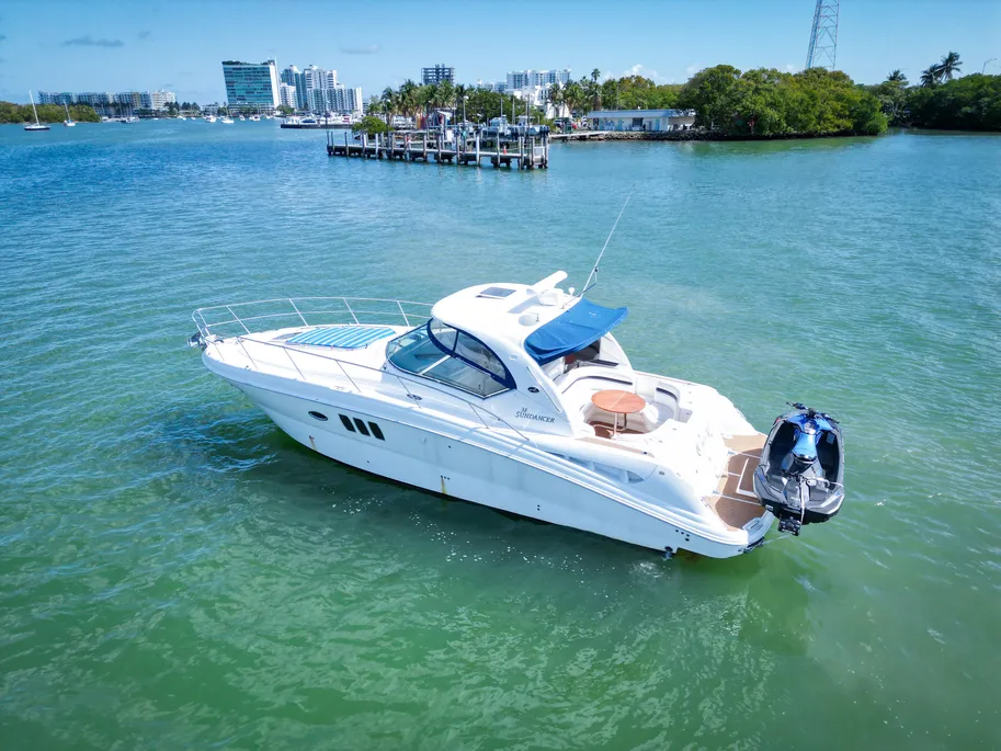 This vessel has been exceptionally well maintained. The boat is turn key ready to hit the water. This 2008 Sundancer has extremely low hours on both engines and generator. Professionally maintained all throughout the boat. Below deck she offers amazing natural lighting and accommodates to all your boating needs. She even features a cigar humidifier! The jetski can be included with the sale a 2023 Seadoo Spark with only 8 hours !