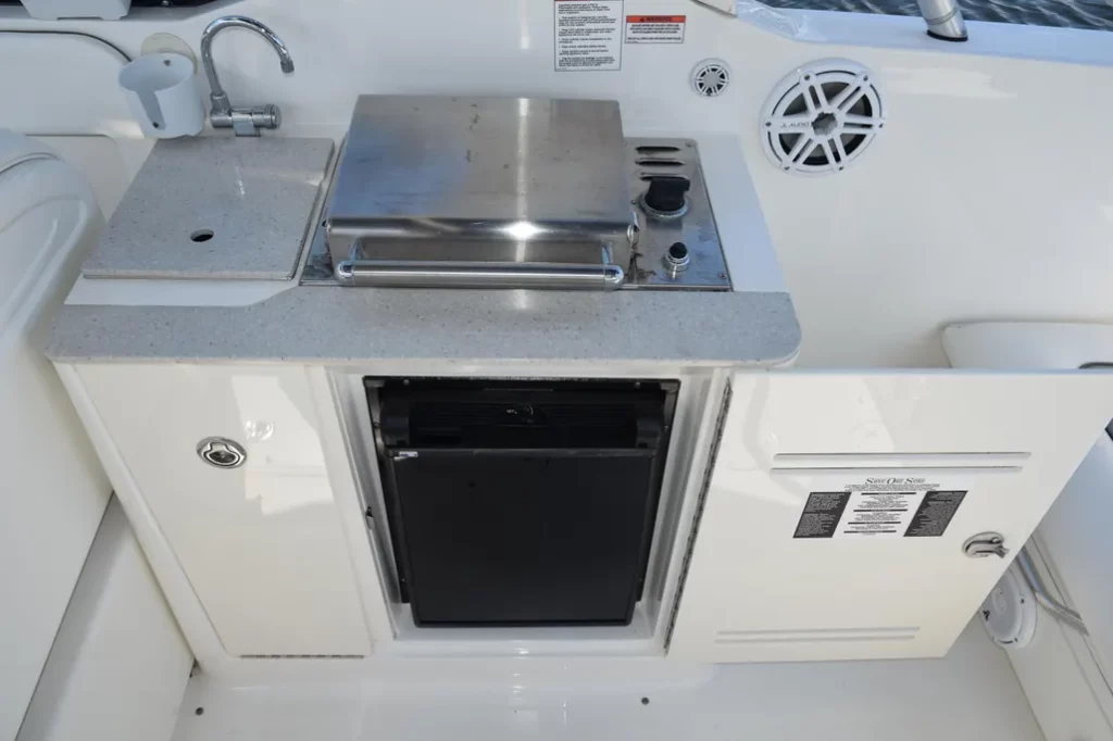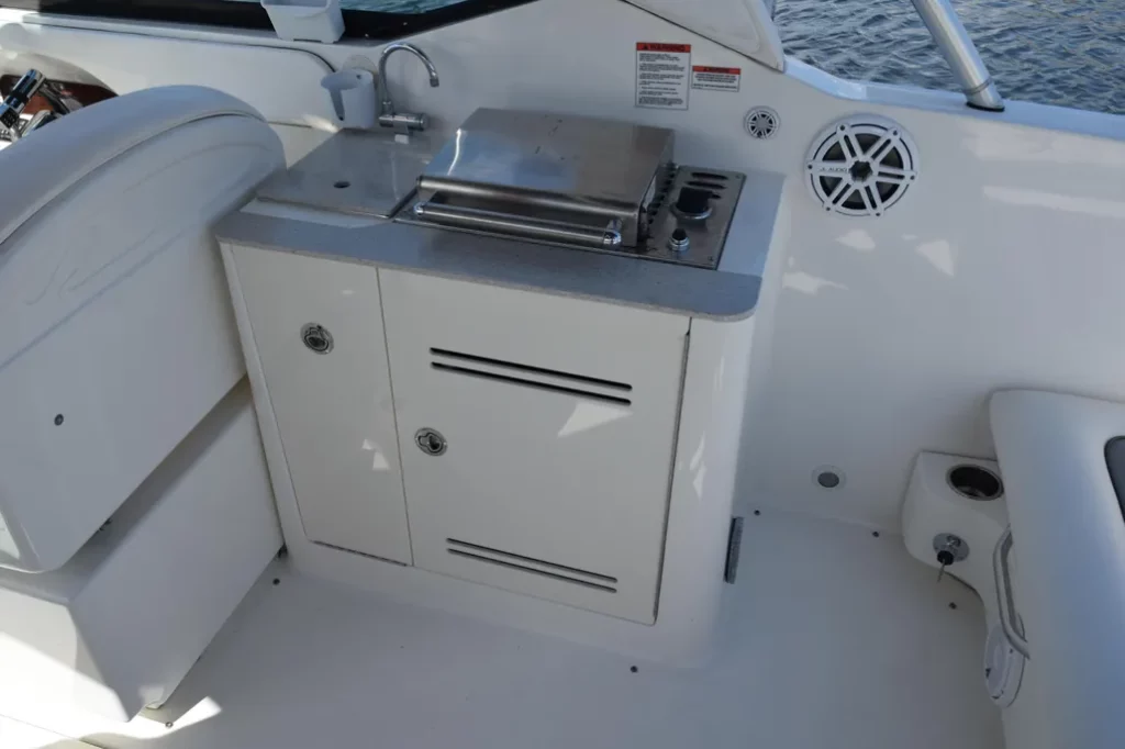 Cockpit: sink, refrigerator, gas BBQ and transom shower