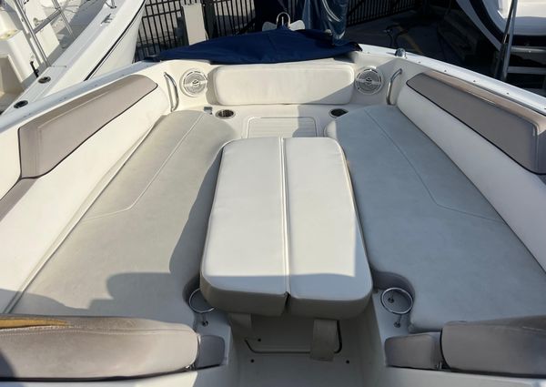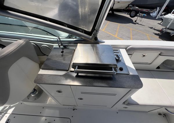 The boat is equipped with digital throttle, extended swim platform, ski tower w/ full shade plus isinglass, rear aft seating, cockpit propane grill, cockpit table, freshwater system with transom shower and cockpit sink, refrigerator, bimini top, bow cover & full cover, windlass anchor, pump out porta potti, Garmin GPS, compass, tower speakers, dual batteries with selector switch, recent bottom painted and onboard battery charger.