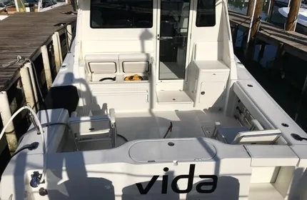 This Is The One. “Vida” is loaded with Jupiter factory and many after-factory custom options. Her unique features include an air conditioned, completely enclosed bridge deck and brand new 9 Kw Fisher Panda Generator. Electronics: Dual Garmin GPSMAP 8215, GSD 24 Depth, 1 Kw Transducer, Garmin GMR 4 Kw Open Array Radar, Garmin GHP 20 AutoPilot, Garmin 300 VHF w/ GHS20/GWH20 Handsets, Garmin GXM 52 XM Weather, Fusion IP700 Stereo w/JL600-6 Amplifier and JL Audio MX770 Speakers, TracVision M3 Satellite Antenna w/Dual Mount Base, Light Bar, ACR-100 Spot Light, FLIR MD-625 Thermal Camera w/JCU Remote, Garmin Grid Remote Control built into a custom Stidd Helm Chair, BT100 & BT200 BlueTooth Receivers, AIS 600 Transceiver, Yamaha HelmMaster, Underwater Lights, Blue Water Desalination System, Custom Stidd Helm Chair with remote control for electric antenna, horn, spare props and much more…..This vessel has been meticulously maintained and always fully-covered when not in use. Yes, This Is The One.