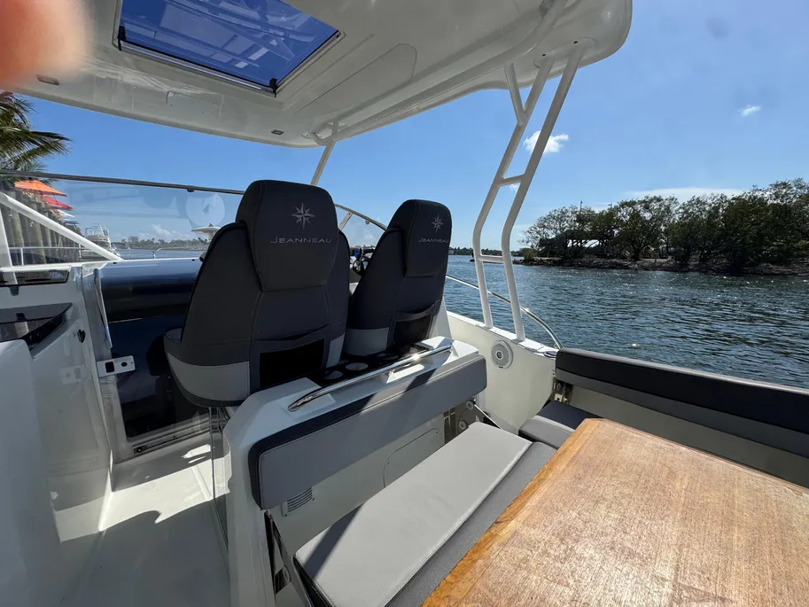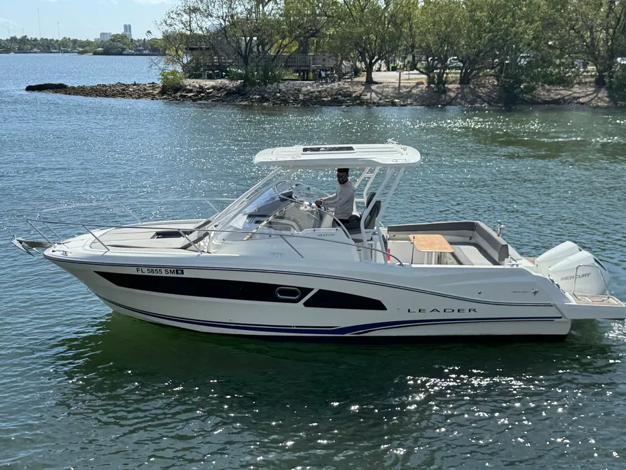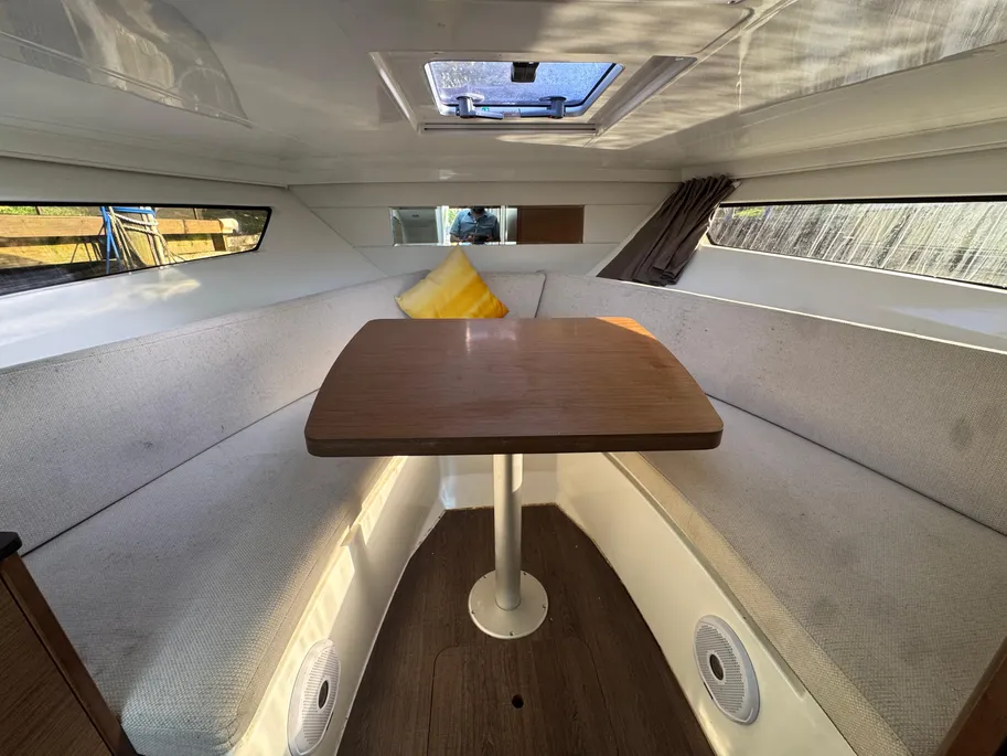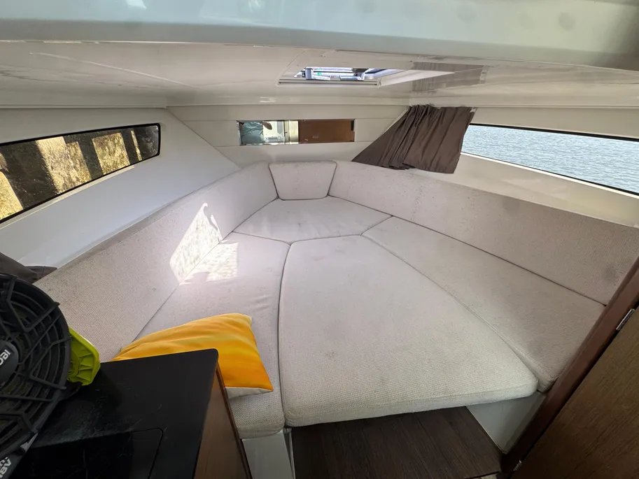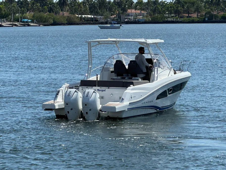 Her traditional V-shaped hull was designed by Michaël Peters. Stable and powerful, her hull ensures excellent seakeeping and very secure handling at sea for family cruising or sporty outings. The layout and organization of the Leader 9.0 make her the ideal boat for day trips or weekend cruises. On the exterior, the vast cockpit benefits from a helm station with seating for two, a portside galley, and numerous storage options. On the interior, the Leader 9.0 will delight all those who appreciate full comfort: she features a very large double berth, a salon that also converts into a double berth, a head compartment with separate shower, a breakfast nook and copious storage. Perfect for family cruising, this model also features long windows in the hull for an extremely bright interior.