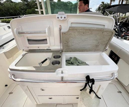 You read this one right. It is a 2021 year model 330 Boston Whaler Outrage with 15 actual hours. The boat is in mint, BRISTOL condition. This Unsinkable Legend includes upgraded twin White Mercury 400 HP’s, and also the Mercury Platinum extended warranties until February 24, 2025. Joystick Piloting, and best of all the SEEKEEPER IS ONBOARD, making this one the nicest one available in the country at the moment .The hull color is Techtonic Silver. It has active trim upgrade, Premium audio upgrade, underwater lights. bow sun lounger, bow table, just to mention the highlights. Due to the untimely passing of the owner, this boat is available for immediate delivery A brand new ROCKET TRIPLE AXLE TRAILER WITH SURGE BRAKES AVAILABLE UPON REQUEST. COMPARE ATAPPROX. 550k FOR 2024 MODEL. FINANCING AVAILABLE and WE ACCEPT ALL TRADES
