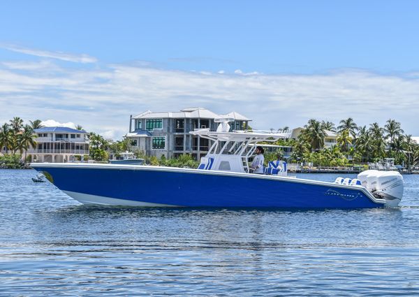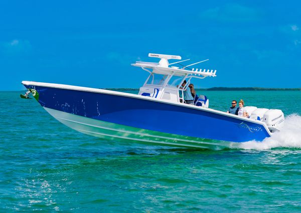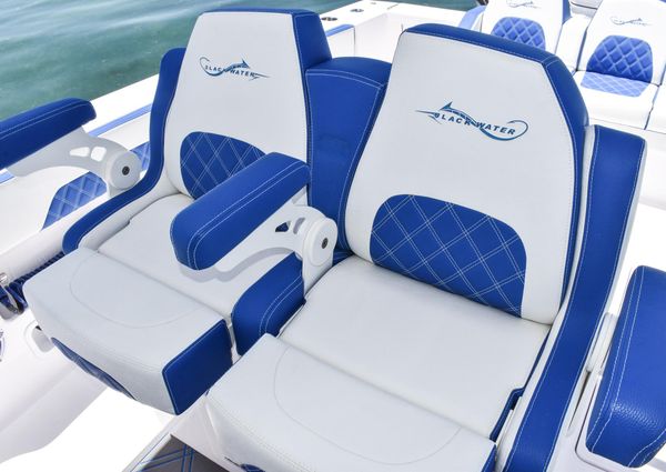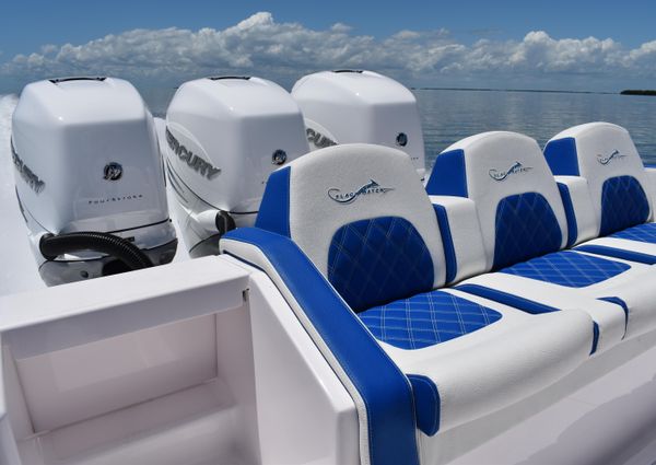 Powered by triple Mercury Verado 400s, this boat features a stunning Lauderdale Blue hull. This Certified Pre-Owned 36′ Sport offers speed and sporty handling as well as luxurious details that come standard on any Blackwater build. This boat comes equipped with many desirable upgrades including Autopilot, Garmin Electronics, and an Upgraded JL Audio Sound System. Her low-hours, triple Mercury 400s offer speed while making it an excellent choice for families, fishing trips, or crossing to the Bahamas.