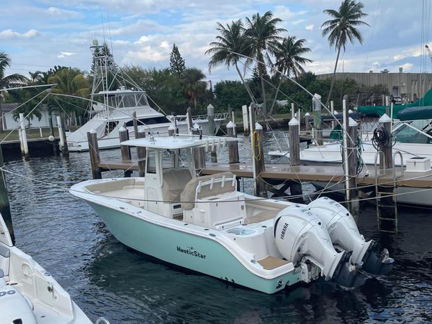 You’re looking at a very clean well maintained 2022 Nauticstar 28 xs powered by twin white Yamaha 300 hp’s with less than 190 hours. The boat is equipped with seafoam hillsides, blackout dash with Simrad 12″, VHF, bow table with filler cushion, bow backrest, vacuum flush head with overboard discharge, stainless steel props, covers, windlass anchor, tea lie wells,