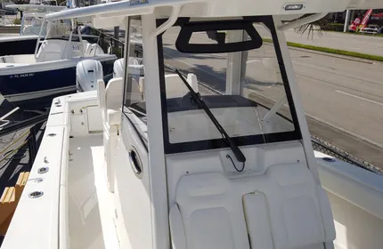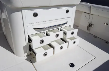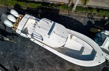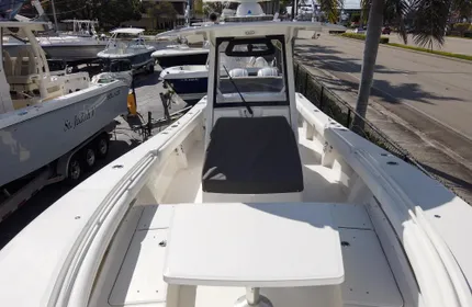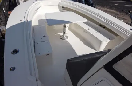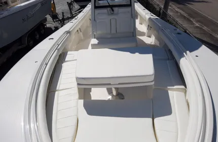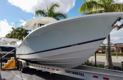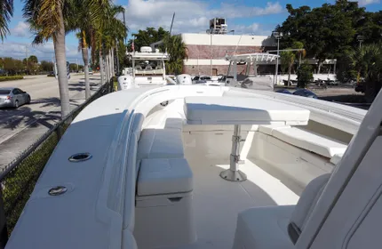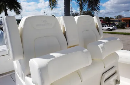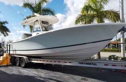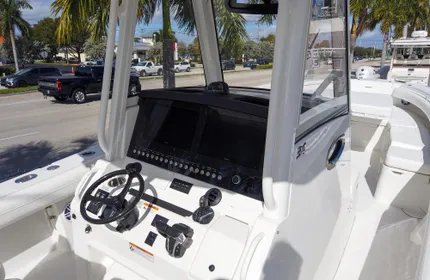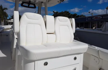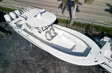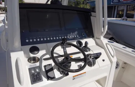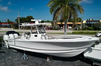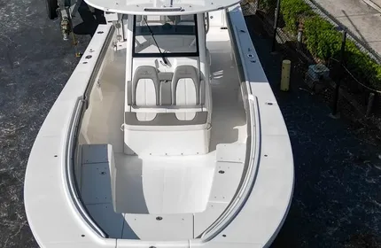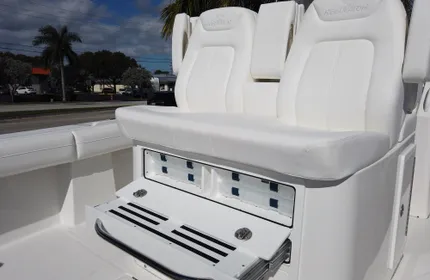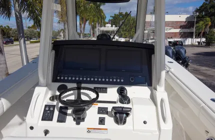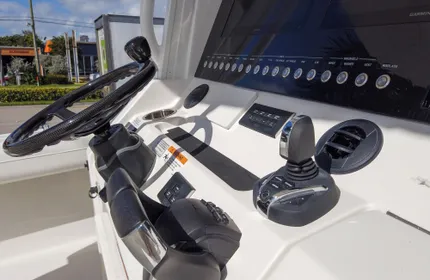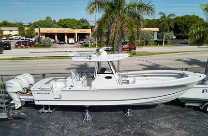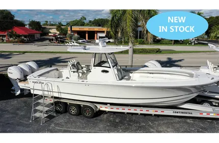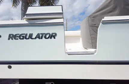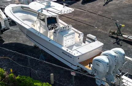 NEW 34 Regulator IN StockĀ Loaded with factory options, Powered with triple Yamaha F300’s White boat with two tone grey and white interior. Yamaha EX Digital helm master, controls, joystick and autopilot, 2- 16″ Garmin Displays, Seakeeper, A/C, Upgraded Stereo, Auto aft sun shade, forward sun shade and the list goes on and on….. Pictures may consist of another boat some options may differ.