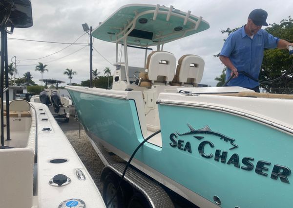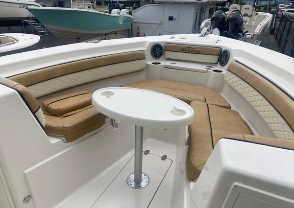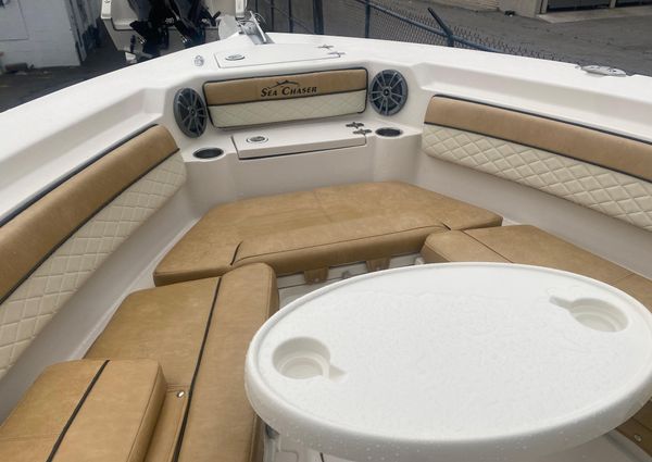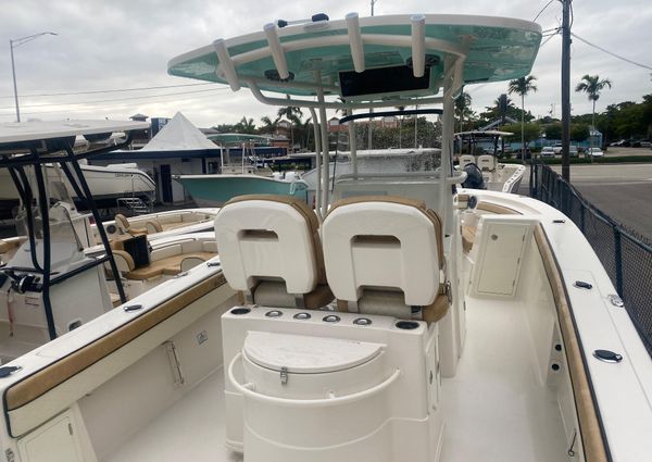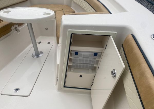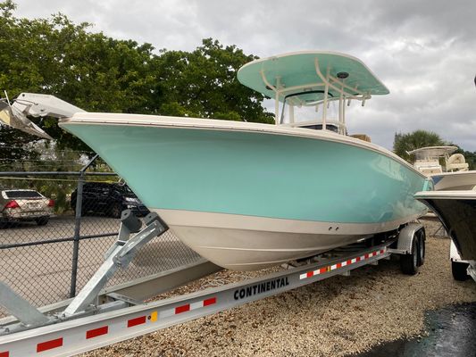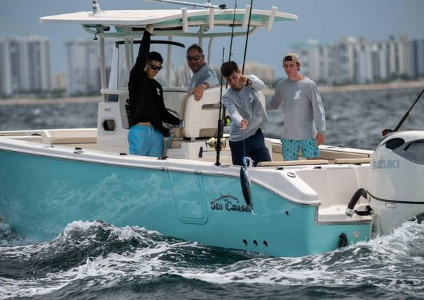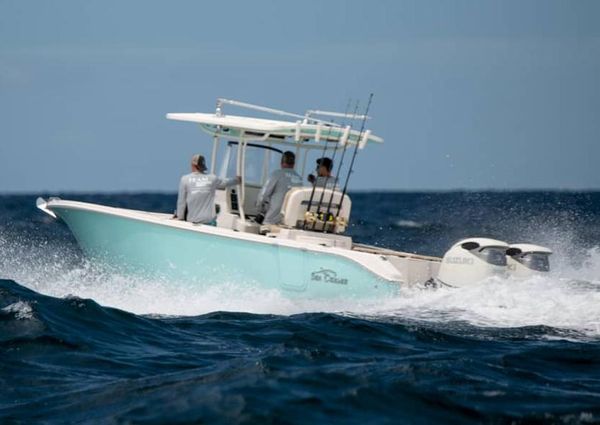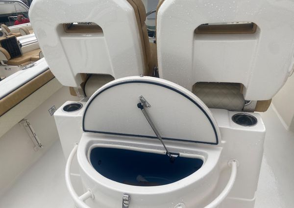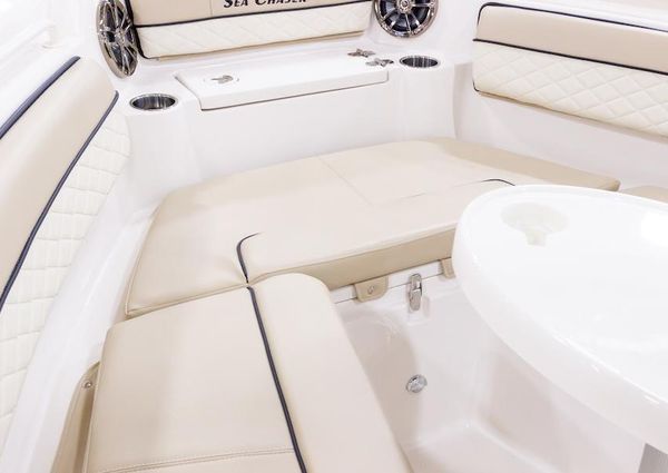 30 HFC Bluewater Series – a sought-after boat beloved by the pros, such as Captain Don Dingman from TV’s Hook The Future. The 30 HFC is not only perfect for anglers, but also for families with features like the port-side entry door, fully electric head with Corian countertops, and stern swim platform for easy and safe access in and out of the water. Throughout the 30 HFC, find high-quality stainless steel hardware, such as fold-down cleats and flush-mounted rod holders, as well as comfortable diamond-pleated upholstery and plenty of seating. The 30 HFC features an in-floor fish box that easily doubles as storage and two livewells. Joysticks
