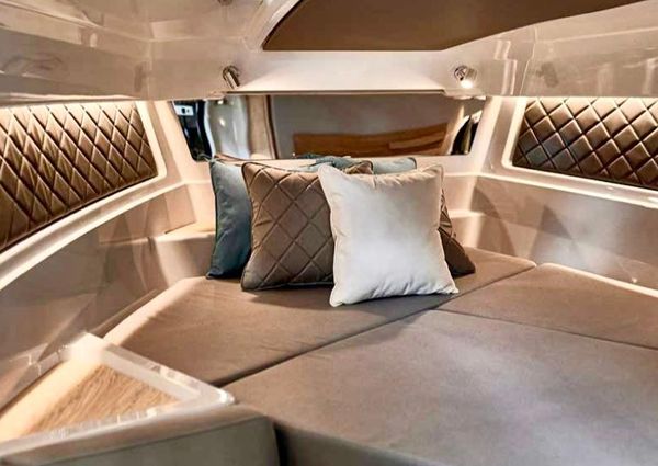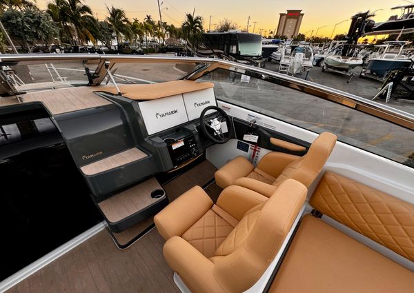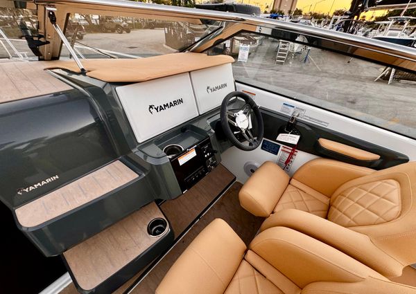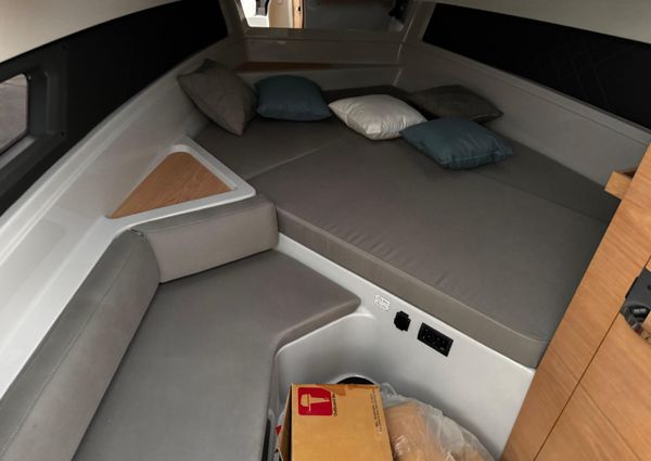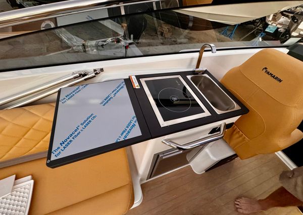 Standard equipment includes an electrical WC, refrigerator, 16″ Yamarin Q smart display, Navionics charts and Softdeck coatings in the open space. Optional equipment includes a second 16″ display, heating or air conditioning, a bimini top or canopy, a table in the open space, a sunbed and a bimini top for the bow deck.