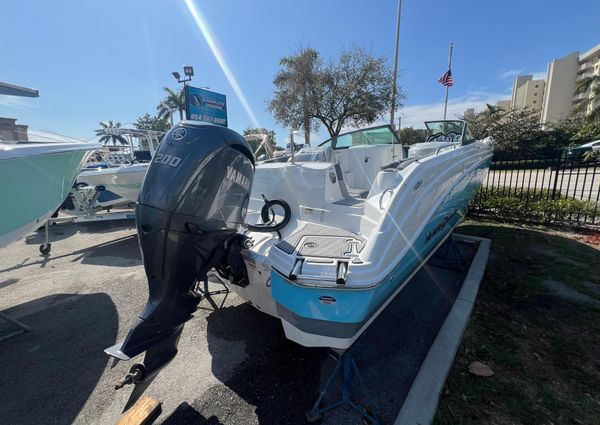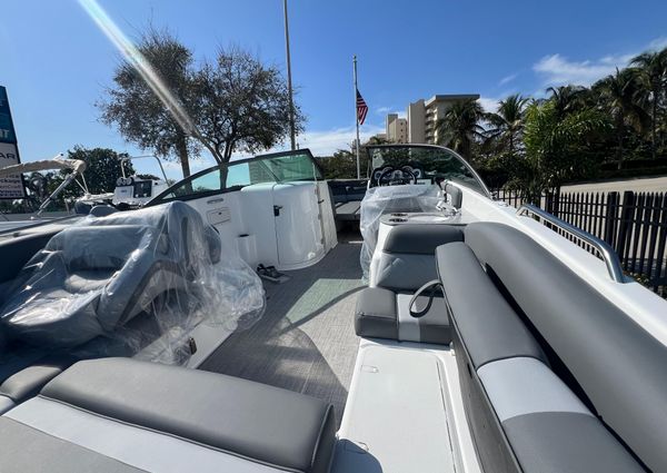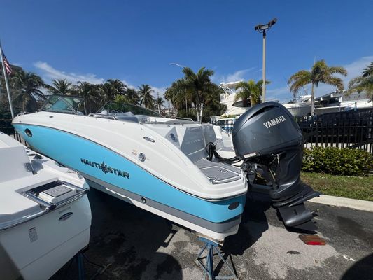 he 243 DC is the perfect combination of size and functionality. It offers an enclosed, step-down dressing room with optional portable head; wraparound seating in the cockpit; and a pressurized water system that services the galley with an optional transom shower. Plush seating bolsters the cockpit and bow with a transitional sun pad and easy-locking storage. Two bucket seats at the helm make way to the panoramic walkthrough windshield. Bow and transom landings offer access to the water for swimming and diving.