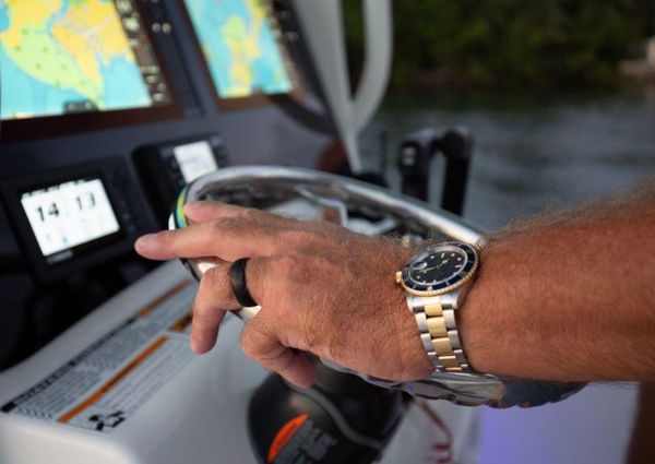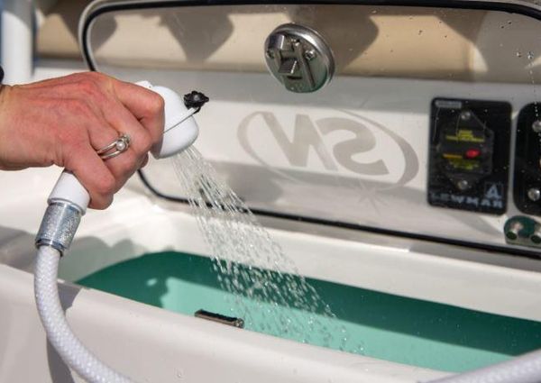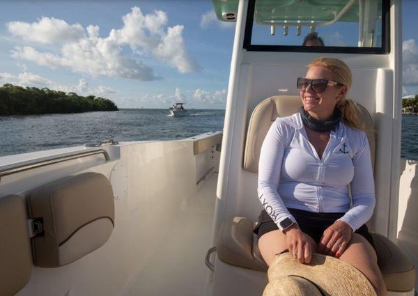 There is nothing you can’t accomplish in a 252 Legacy. Its deluxe leaning post includes a built-in 21-gallon baitwell and prep station for pro-style fishability. It also holds tackle storage drawers and a freshwater washdown. Captain’s seating comes with flip-up bolsters, an armrest and a footrest. The whole family can cruise comfortably on the 252, too. The roomy cockpit features plush U-shaped seating and flip-out backrests in the bow. Table and filler options transition the space to a sunpad or picnic area. Three-across seating at aft houses an 18-gallon cooler and an oversized insulated 50-gallon fish box. A walkthrough transom door makes way to a swim platform with a retractable ladder. Whether hauling in a prize lunker or cruising around with family and friends, good times on the 252 Legacy will go on forever.