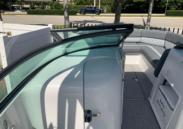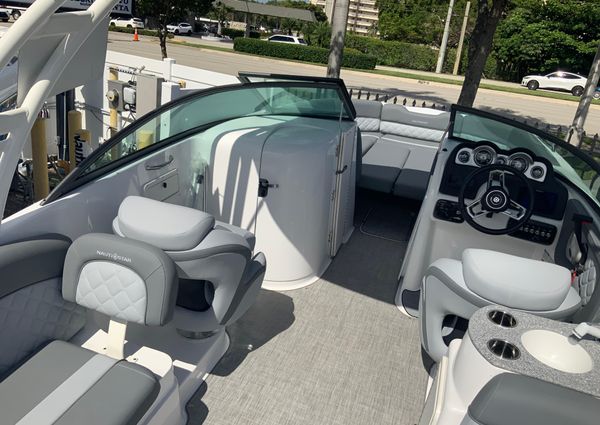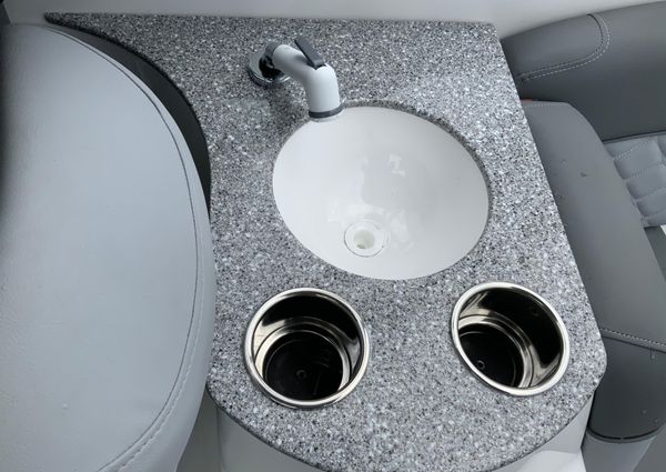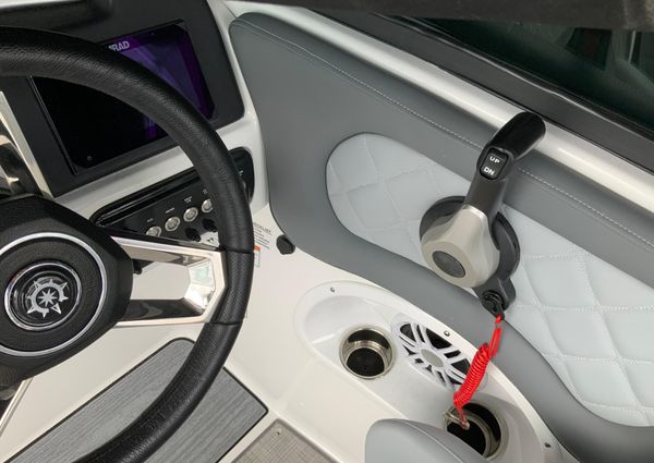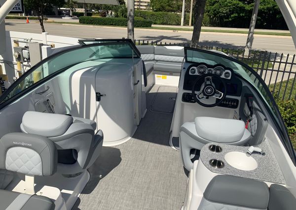 cockpit. It has a fusion stereo. Has a GPS with depth finder. Full bow cushions for lounging. This