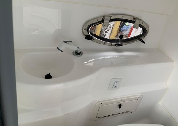 model has a head and two sinks, with a shower at the stern. This boat has been indoors and now