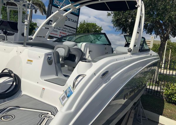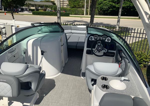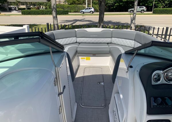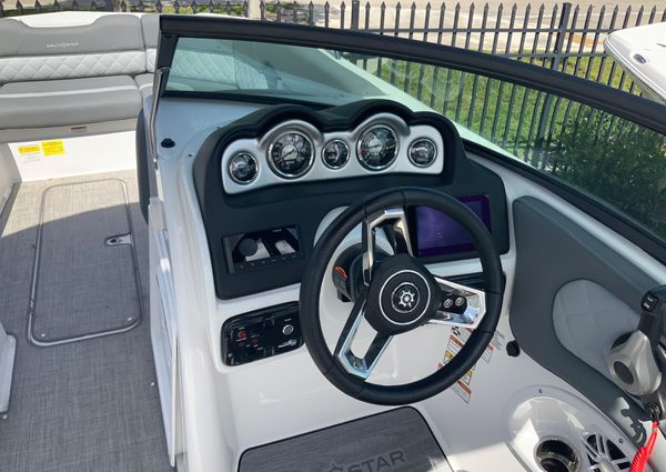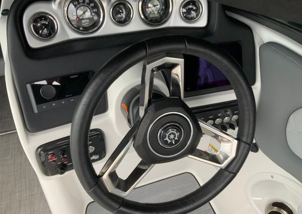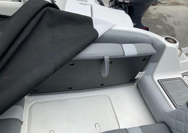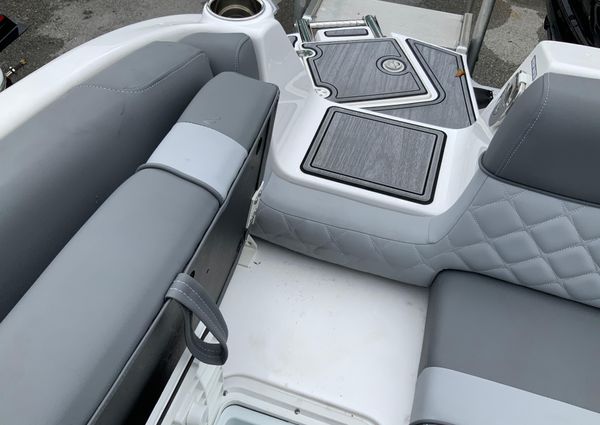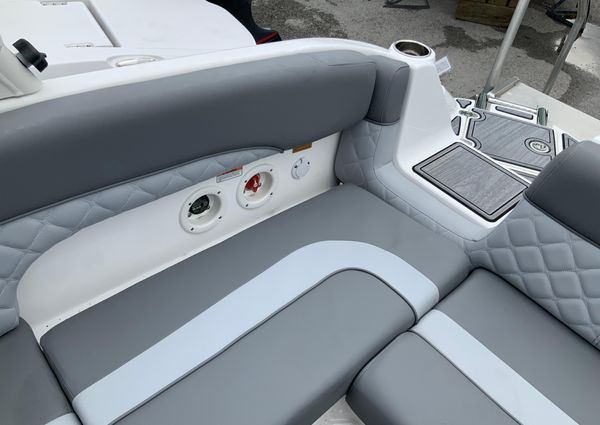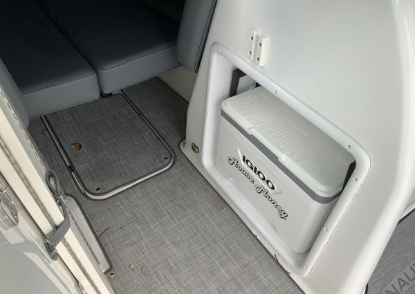cockpit. It has a fusion stereo. Has a GPS with depth finder. Full bow cushions for lounging. This