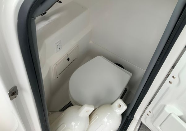model has a head and two sinks, with a shower at the stern. This boat has been indoors and now