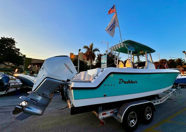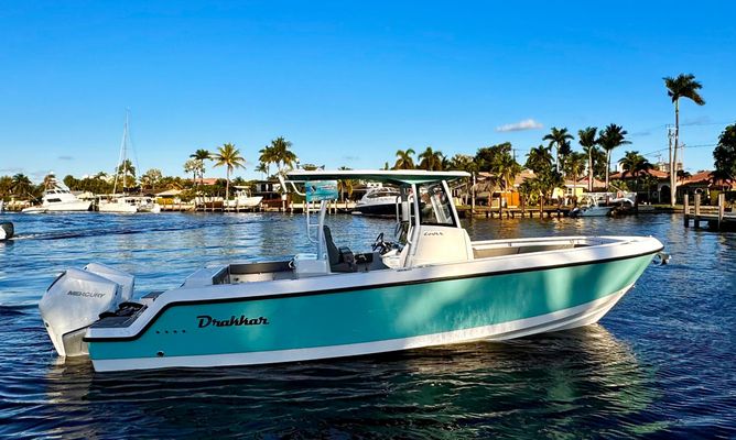 You’re looking at a brand new 2025 Drakkar 28 center console powered by twin Mercury 300 hp four strokes. The boat is equipped with seafoam green hullsides, hard top, black out dash with a Simrad 12″ GPS/sounder,full windshield with powered vent, aquarium livewell, rear aft folding seat, cockpit flooring, huge head compartment with electric head, huge bow seating area, windlass anchor and more. FINANCING AVAILABLE and WE ACCEPT ALL TRADES.