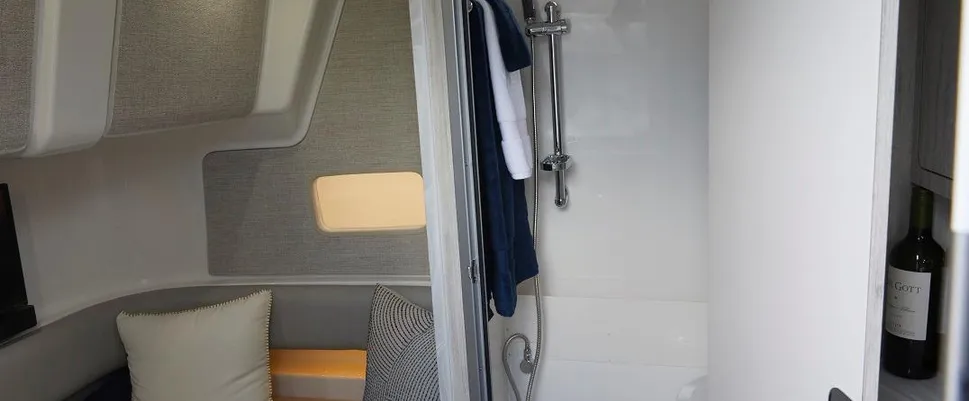With more fishboxes and rod holders-per-foot than any boat in our fleet – you’ll be ready for the offshore bite. Relaxation is never far away thanks to abundant forward seating, forward settee with extra deep cooler, and convertible electric pedestal sun bed/table.