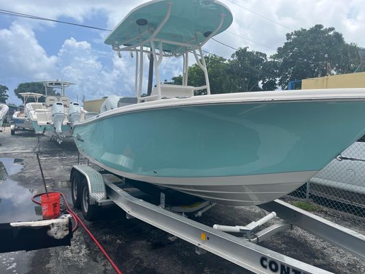 22 HFC is an affordable, versatile and durable center console designed for family, fishing and fun. The innovative 22 HFC comes standard with angler-friendly features, like stainless steel fold-down cleats and flush-mounted rod holders, under-gunnel rod storage with LED lighting, and a 25-gallon stern baitwell. For families who need plenty of space for adventure, the 22 HFC features a roomy, comfortable bow seating area, a console front passenger seat and a stern bench seat. A popular upgrade option for the 22 HFC is the unique flip-up console with a step-down changing station.